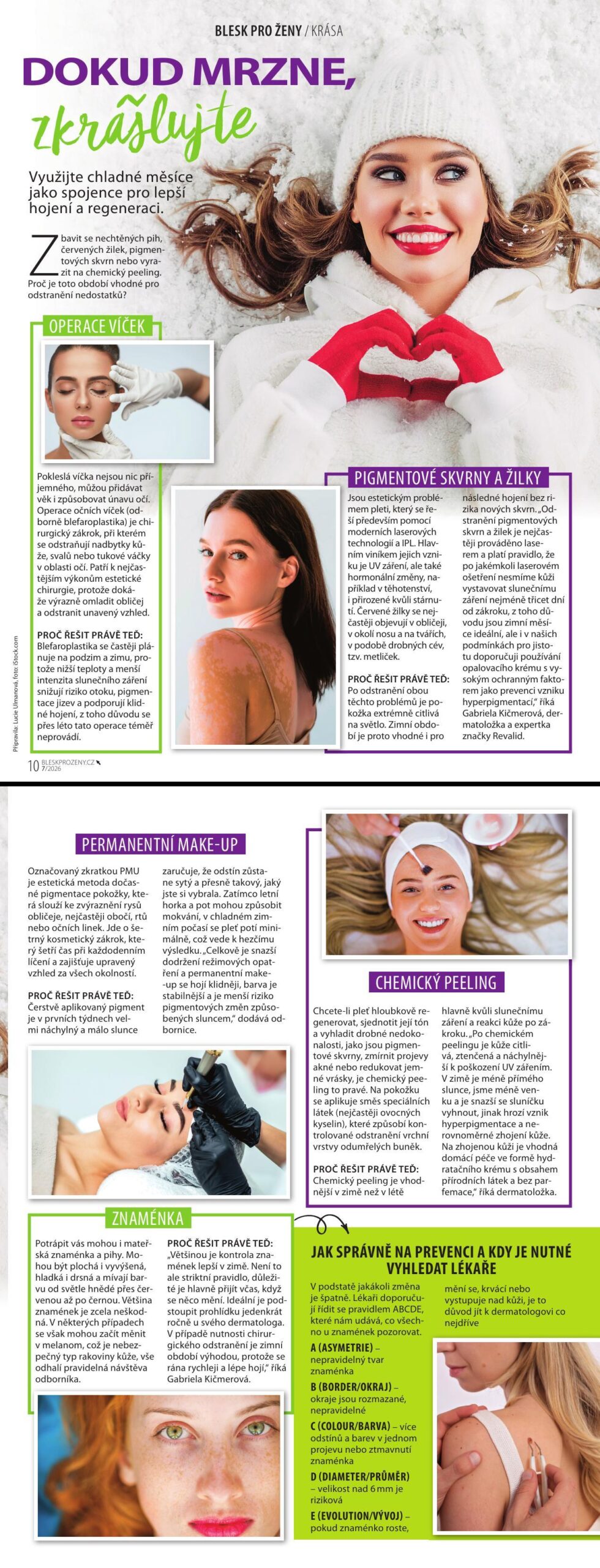 „Většinou je kontrola znamének lepší v zimě. Není to ale striktní pravidlo, důležité je hlavně přijít včas, když se něco mění. Ideální je podstoupit prohlídku jedenkrát ročně u svého dermatologa. V případě nutnosti chirurgického odstranění je zimní období výhodou, protože se rána rychleji a lépe hojí,“