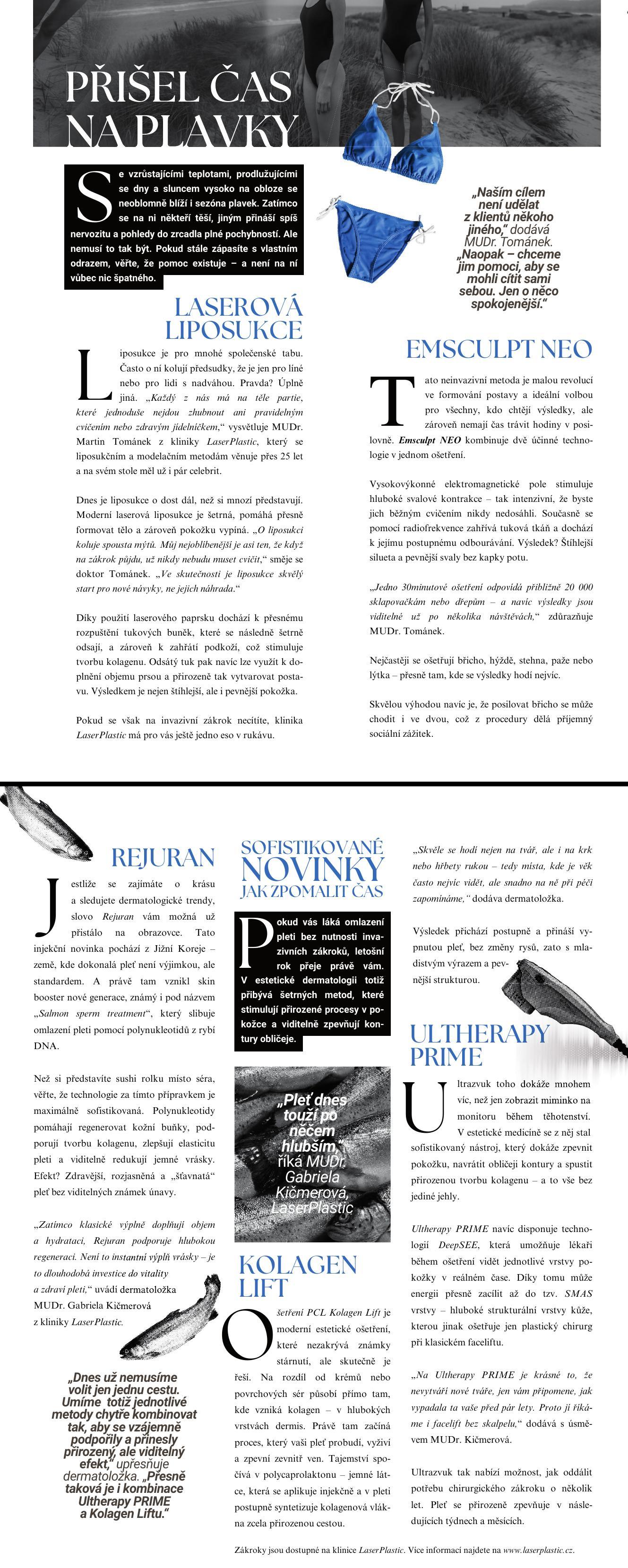 Připravte se na plavkovou sezónu s pomocí liposukce, Emsculpt NEO, lososího sperma, Ultherapy PRIME nebo Kolagen Liftu. MUDr. Tománek a MUDr. Kičmerová vysvětlují, jak na to.